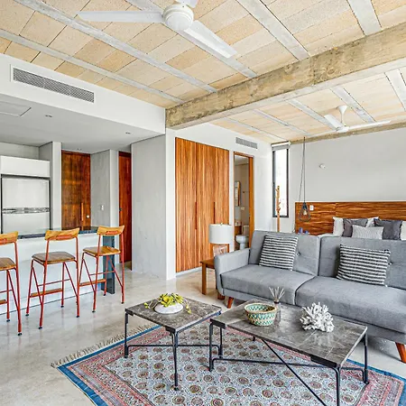 The 60 m^2 Stylish Large Loft With Pool Apartment is located about a 10-minute drive from Tres Rios Ecopark and a mere 1.1 km from Vintage House Cancun. Guests can lounge by an outdoor pool before taking a cooling dip.